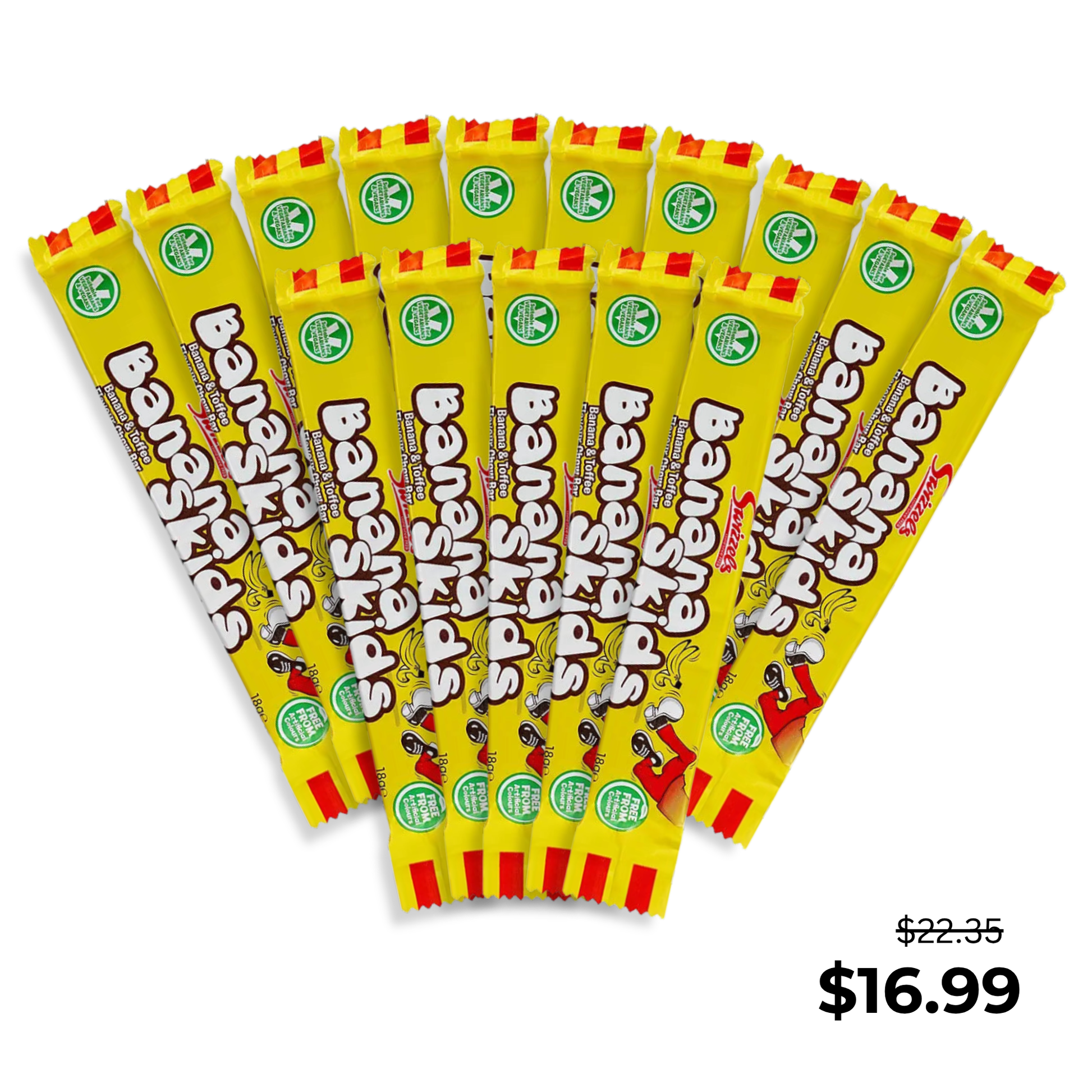 A retro favorite from Swizzels, Banana Skids are chewy, stick-style candies combining bold banana flavor with rich toffee caramel. Their playful yellow-and-brown appearance and nostalgic taste make them a beloved treat for all ages