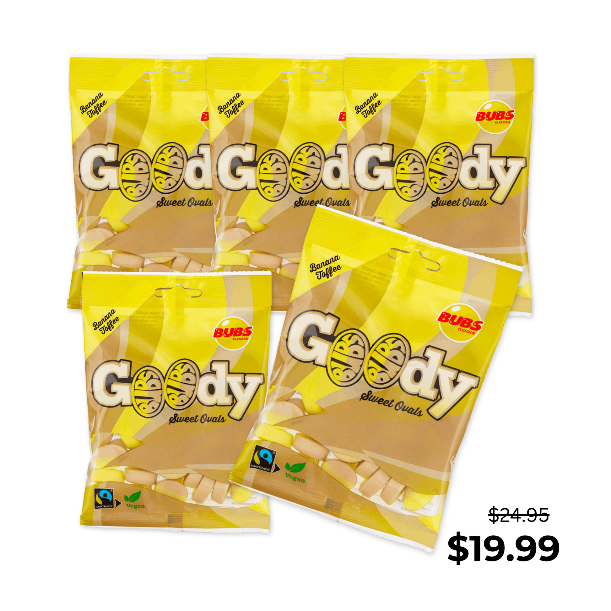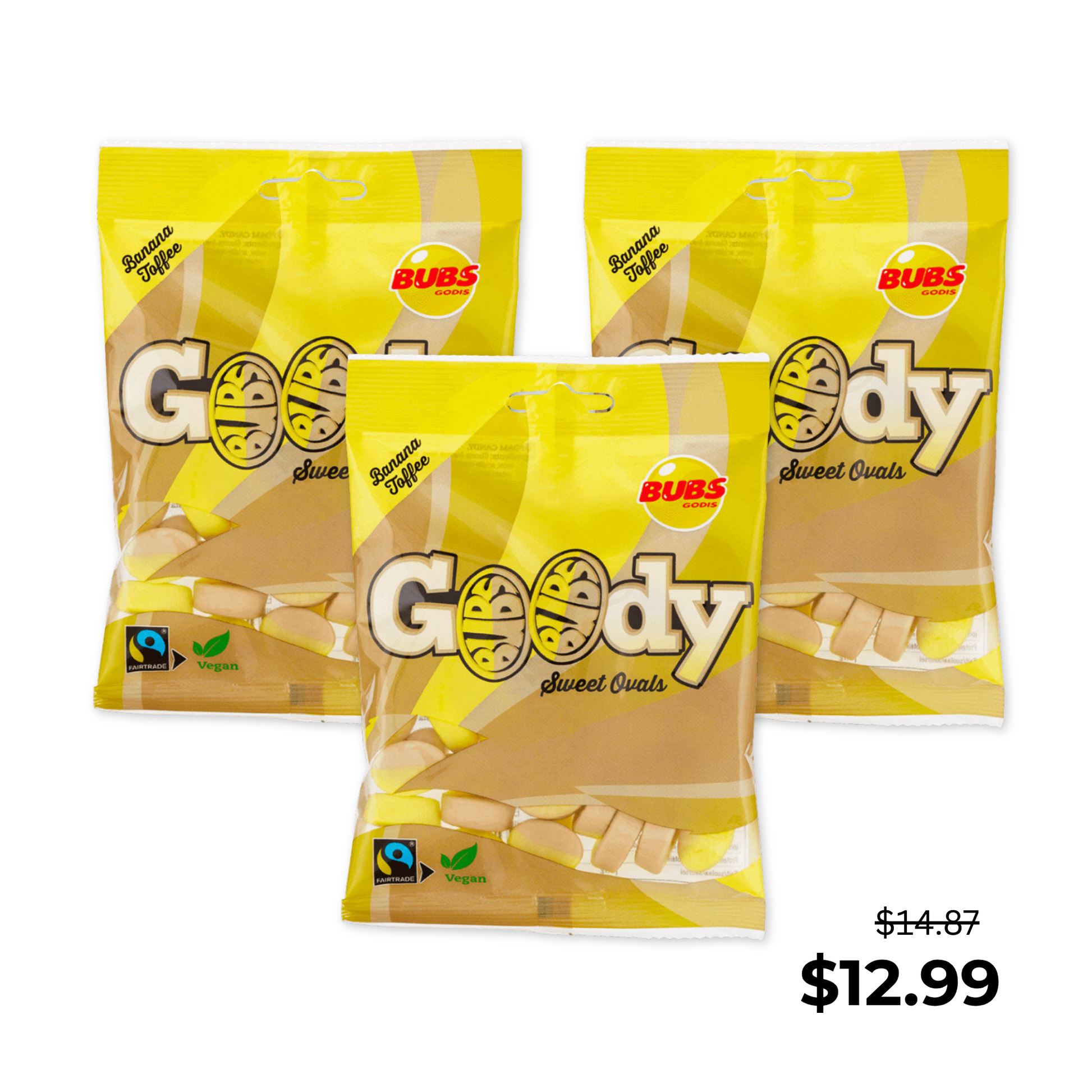 These are completely bananas. Plus wonderful caramel. You recognize the taste from one of our most popular candy pieces in the pick and mix, Banana Bubs. But now in a smaller format as a bag. Tasty!