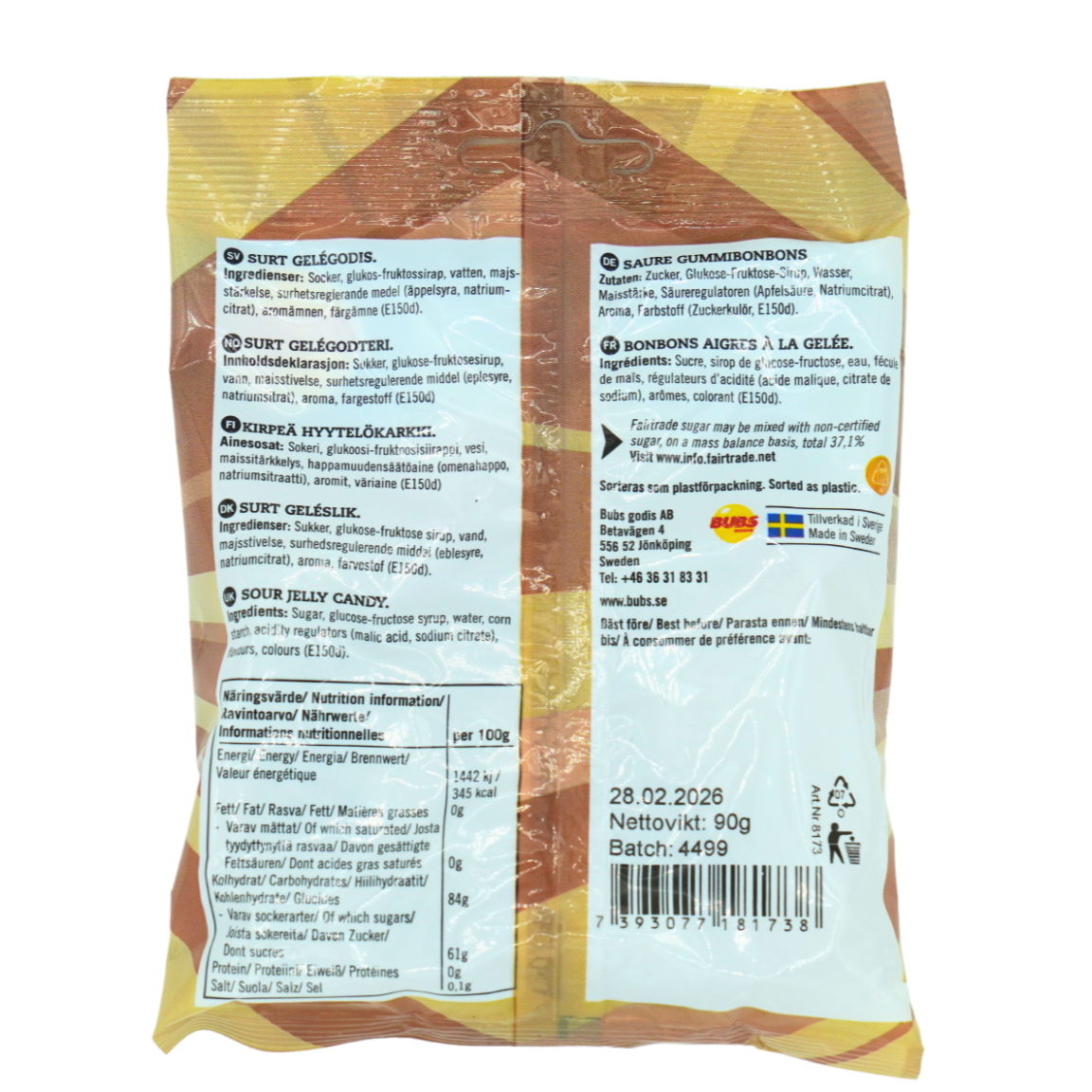 Every piece of candy in our bags are Fairtrade certified, and free from gelatine and other animal additives.
