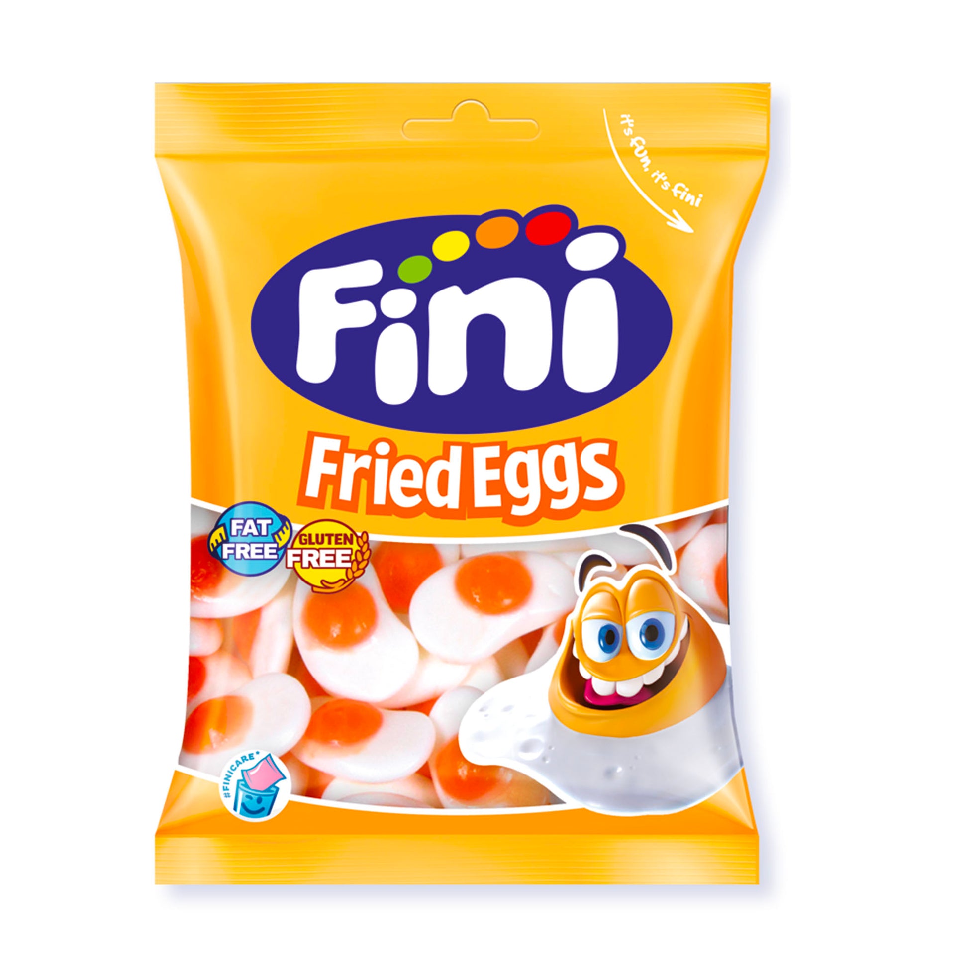 Fini Fried Eggs are fun, egg-shaped gummy candies with a sweet, fruity flavor. Soft, chewy, gluten-free, and fat-free, they make a playful treat for all ages.