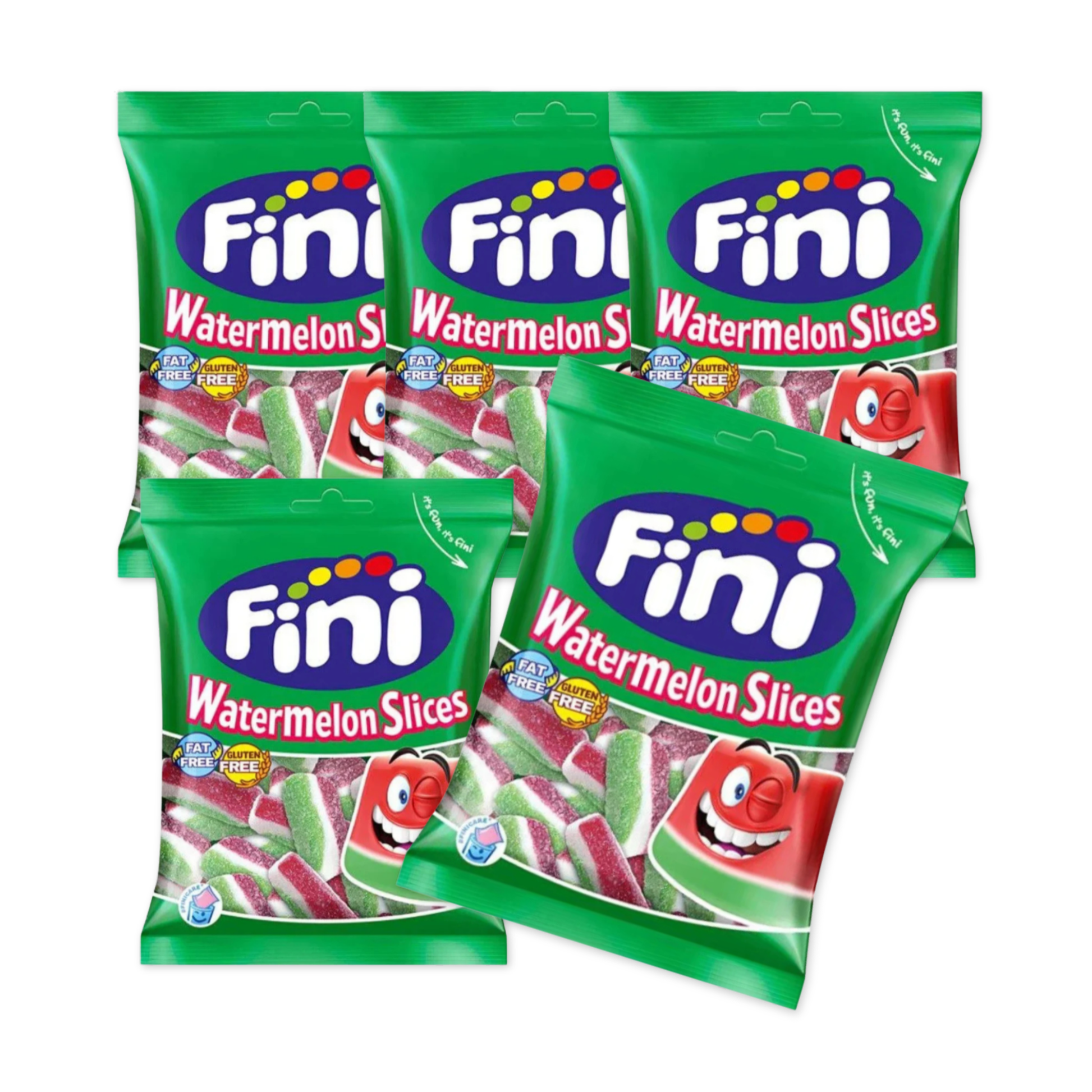 Fini Sour Gummy Watermelon Slices. Enjoy a sweet, sugar-coated, gummy watermelon slice bursting with flavor. These gummy watermelon slices would be a great addition to your weekend bbq. Use them as a drink garnish for your watermelon inspired cocktail.