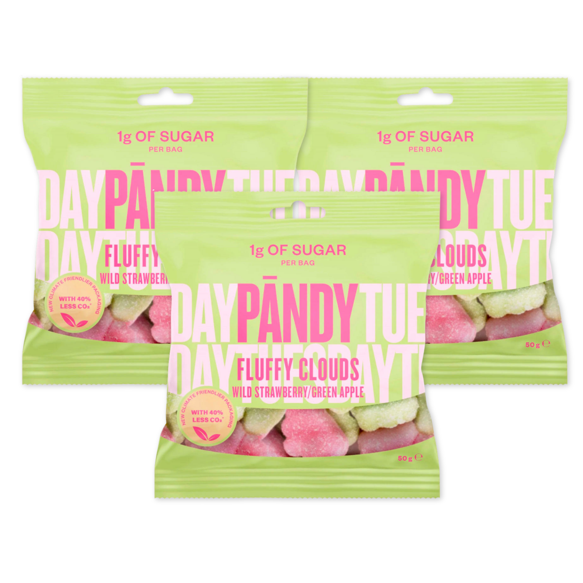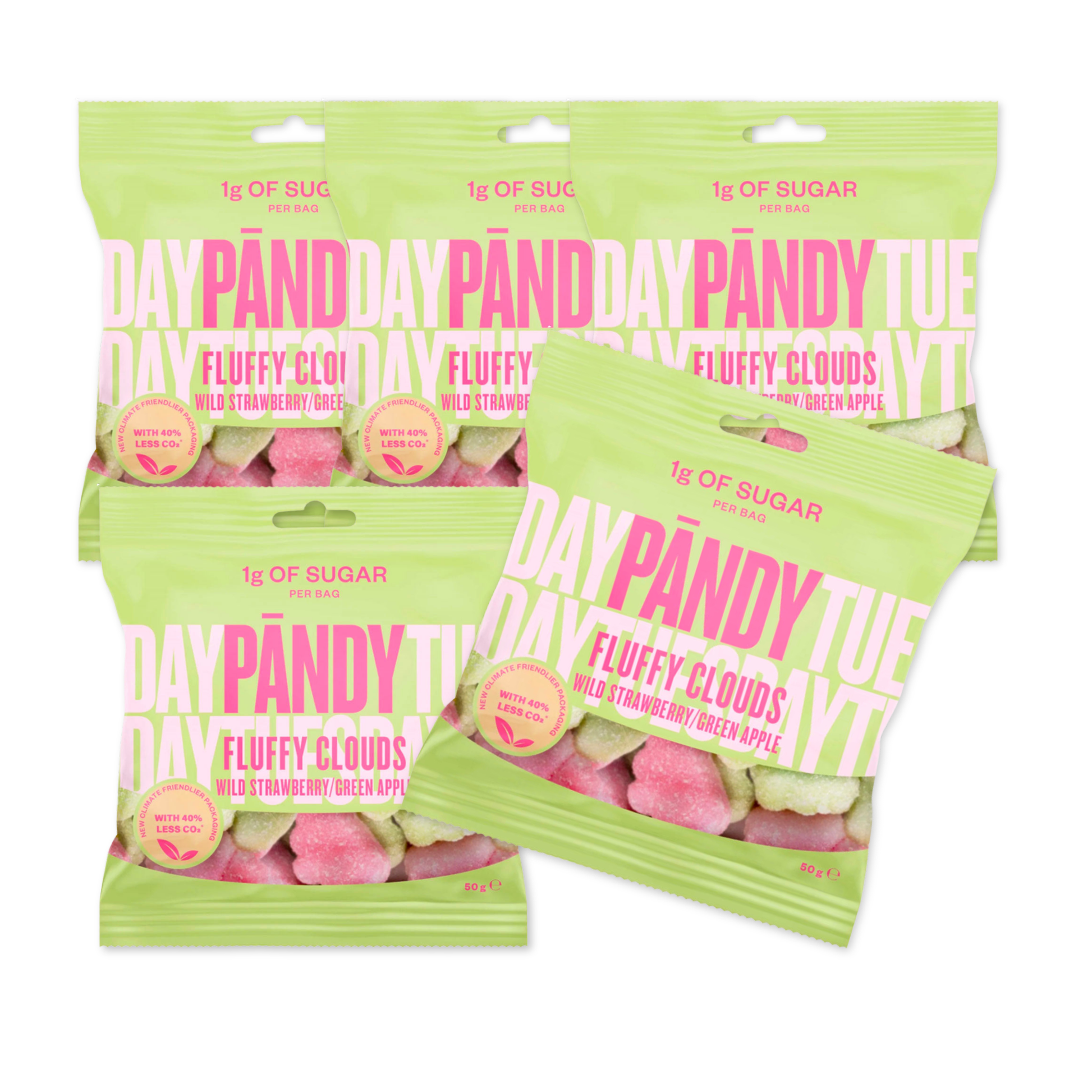 Float away to candy heaven with Pändy Candy Fluffy Clouds! These soft, chewy foam candies combine the sweet taste of wild strawberry with the tart freshness of green apple, creating a delightful sweet and sour experience in every bite.
