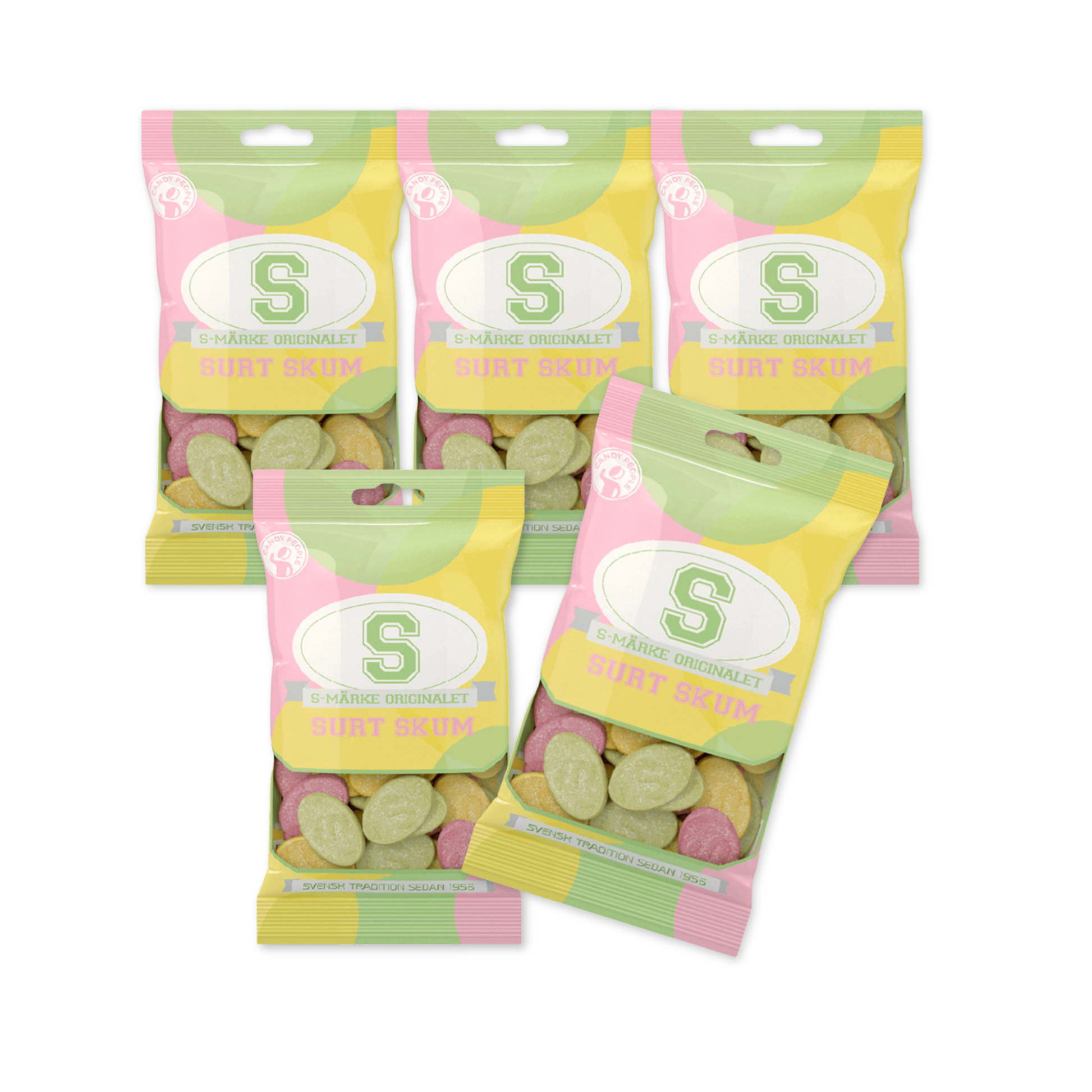 S-sign Sour Foam is a sweet foam candy with a sour sugar coating. A foam variant of the the classic S brand candies, but with a lighter and fluffier feel.